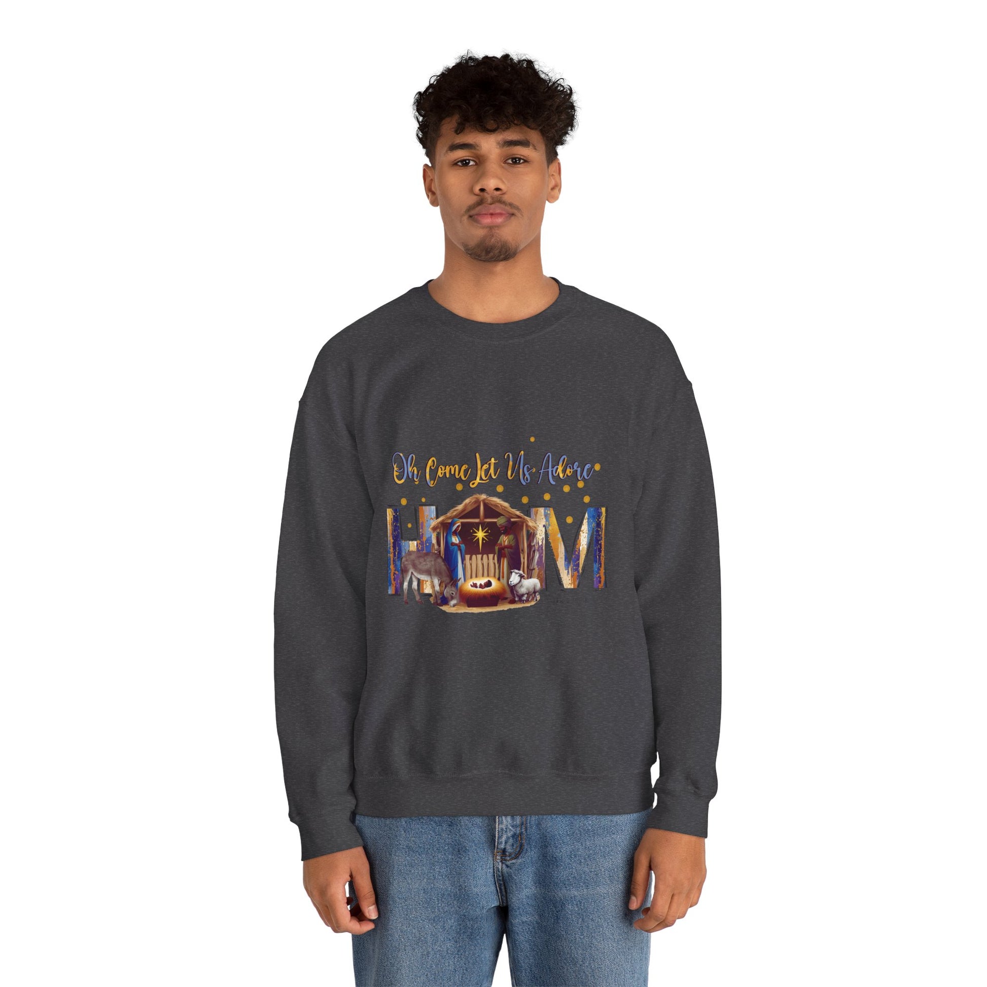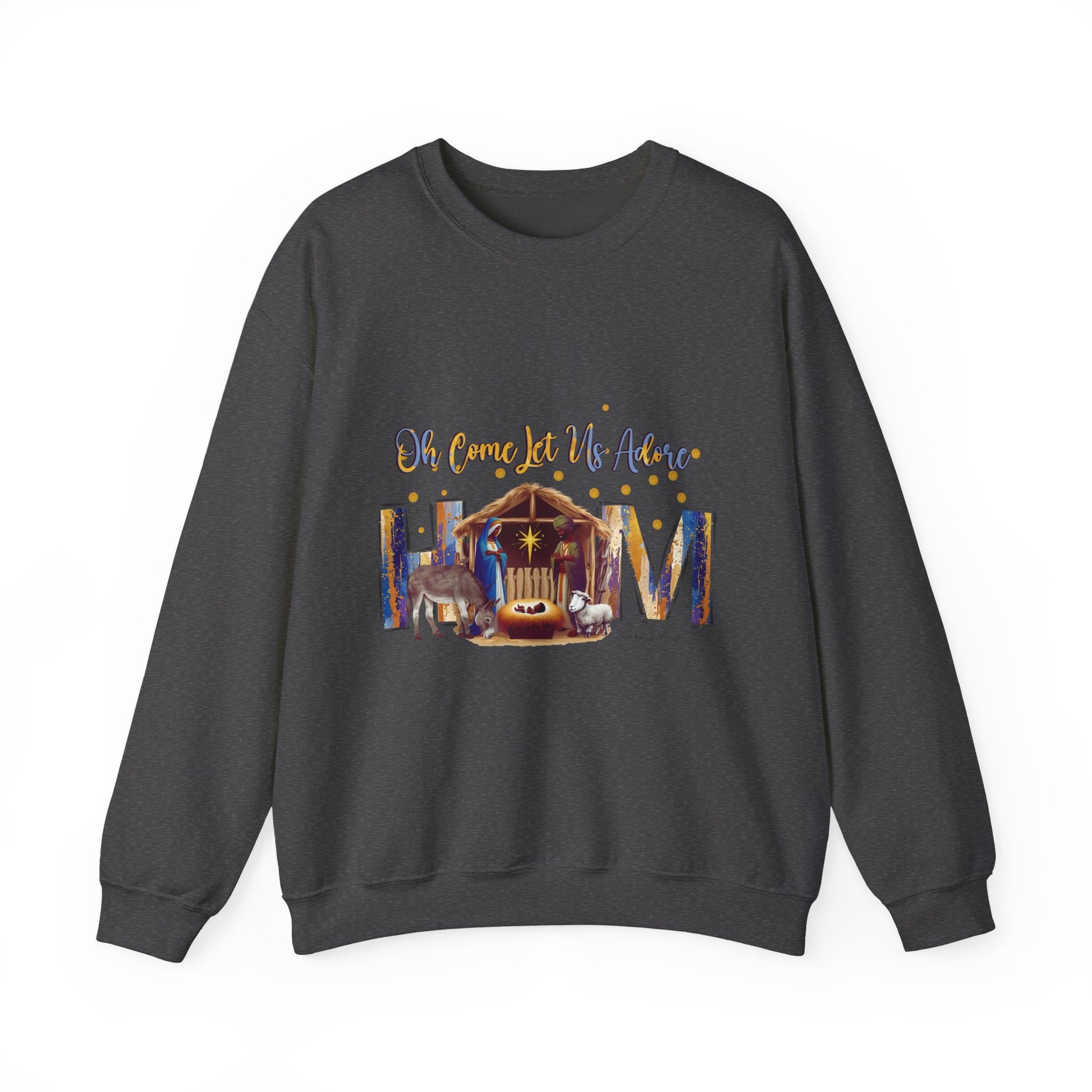 Christmas Nativity Sweatshirt — "Oh Come Let Us Adore Him" Cozy Holiday Crewneck