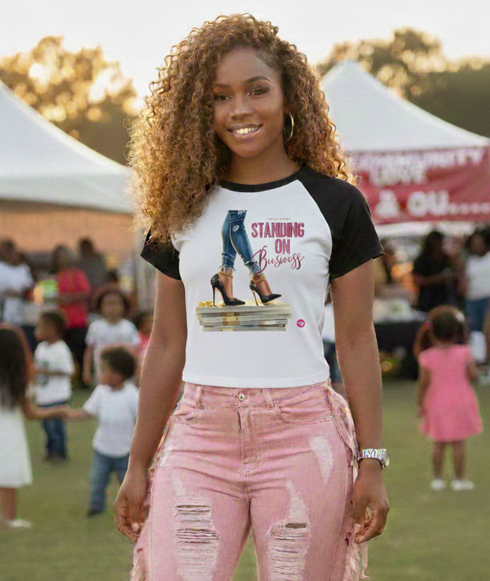 "Standing on Business" Micro Rib Raglan Baby Tee